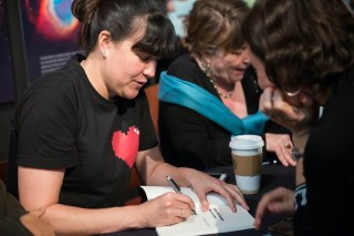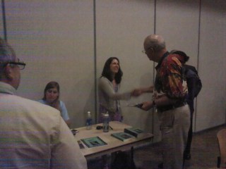 It finally happened – at a reading in September, I did indeed have a grand total of one person (not required to be there) show up. I was shocked: it was billed as an open mic, and open mic usually attracts an audience. I still read, and with some flair, because hey, that one person did drive all the way to see me. But I spent the next couple of days in a funk, wondering why the heck I was doing this and feeling grumpy. That was my initiation into the one-person audience. I’m certainly not the only writer that’s happened to: my friend Corwin Ericson tells a hysterical story about his reading with a one-person audience when he was on a book tour for Swell. As his one soon-to-be audience member walked toward the empty chairs, his only thought: “Please don’t sit down. Please don’t sit down.”