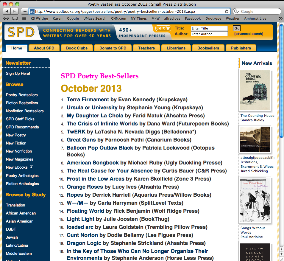It helps that I’ve also had well-attended and attentive crowds. The Manchester reading was fantastic: an open mic with probably 75 people. Mckendy Fils-Aime is the host with the most. Brandon Amico treated me lavishly (WAFFLES!!). Lots of great poetry & prose at the open mic (Brandon, Mckendy, Christopher, Peter Kispert, William James, Sarah Newton, Dillon Welch, so many more!) I had a ball. I also read 10 minutes too long (yay math, but math in front of a crowd maybe too much pressure). I’ve had readings with enthusiastic audiences in Amherst, Greenfield, Cambridge, Boston, Northampton, Orange, and more. This weekend I’m on TV, in Hopkinton. Next week I’ll be in Albany.